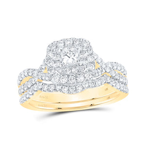 14kt Yellow Gold Princess Diamond Halo Bridal Wedding Ring Band Set 1 Cttw