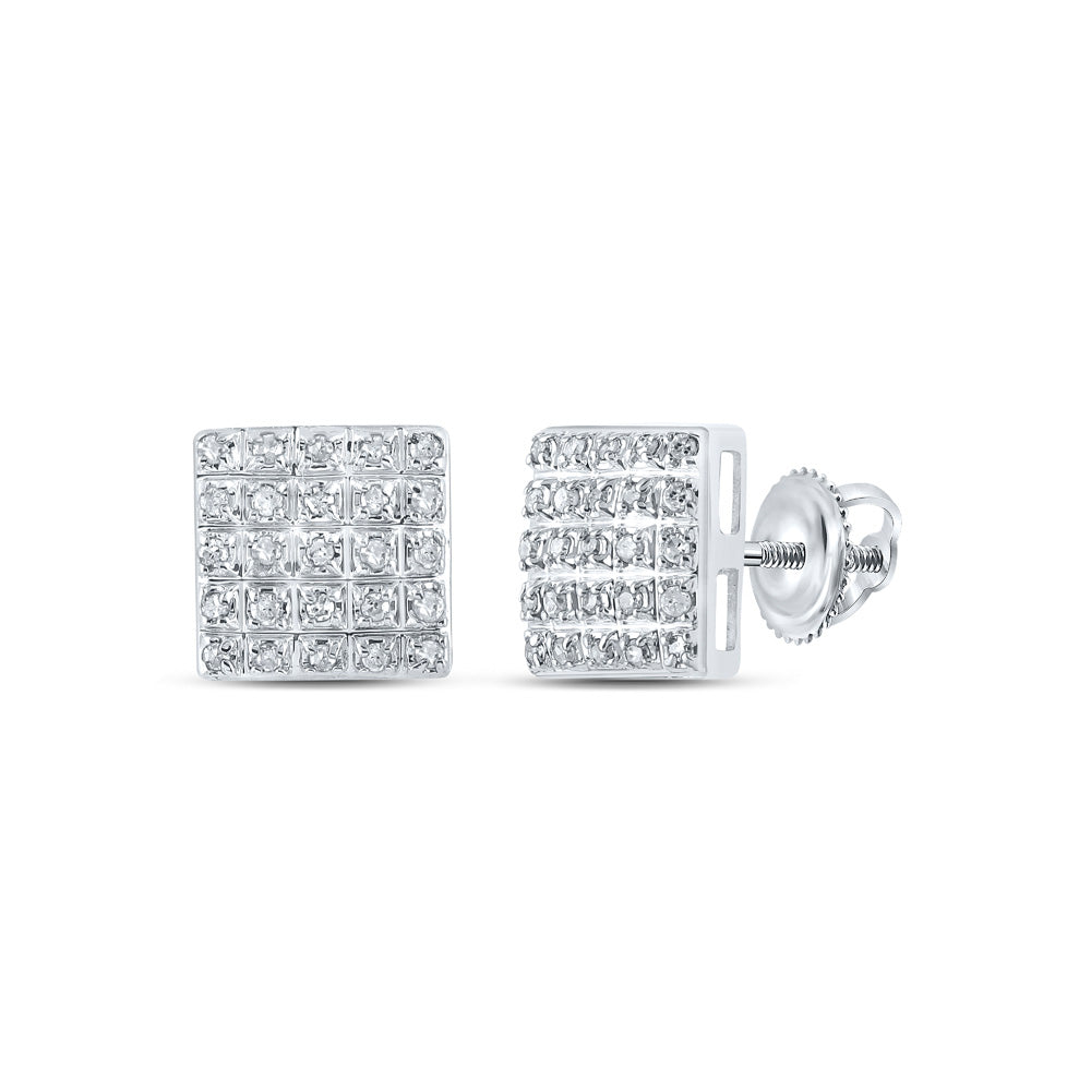 10kt White Gold Womens Round Diamond Square Earrings 1/6 Cttw
