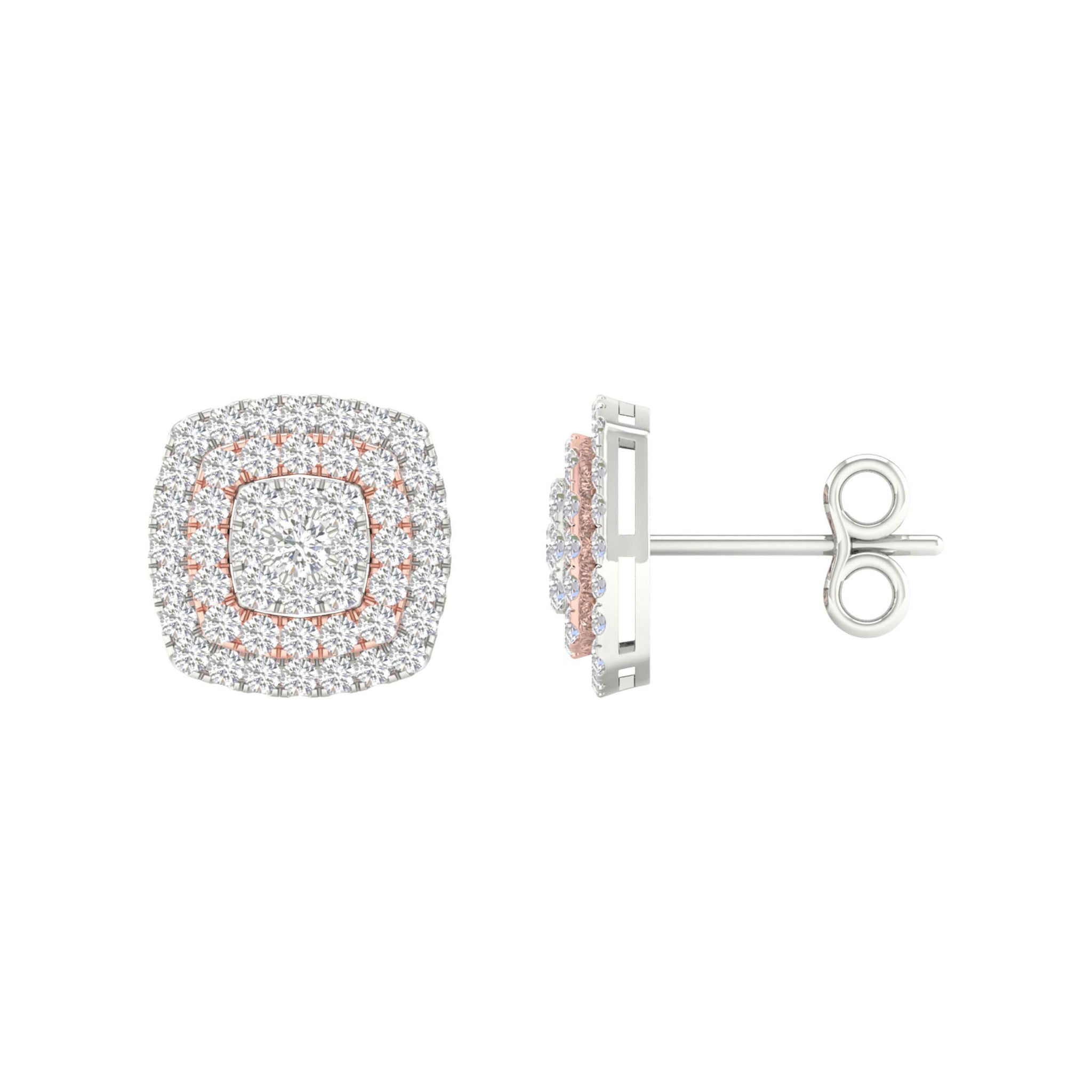 14kt Two-tone Gold Womens Round Diamond Square Cluster Earrings 1 Cttw