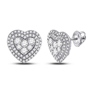 14kt White Gold Womens Round Diamond Heart Earrings 1 Cttw