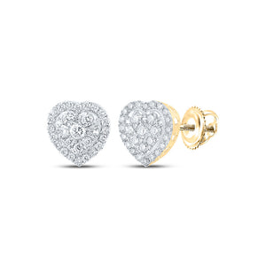 14kt Yellow Gold Womens Round Diamond Heart Earrings 3/4 Cttw