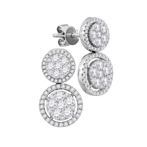 18kt White Gold Womens Round Diamond Circle Cluster Dangle Earrings 1-1/2 Cttw