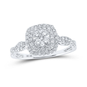 10kt White Gold Womens Round Diamond Square Cluster Ring 1/2 Cttw