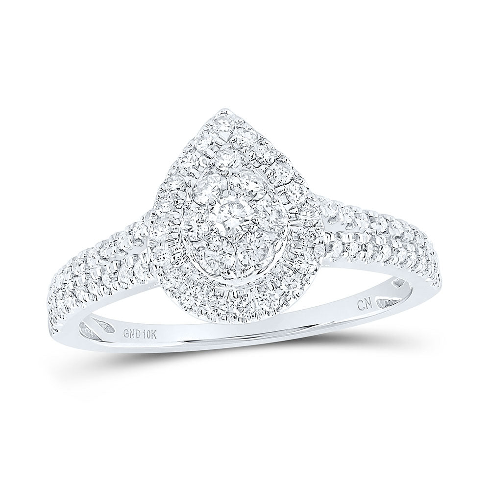 10kt White Gold Womens Round Diamond Teardrop Cluster Ring 1/2 Cttw