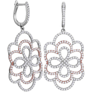 18kt Two-tone Gold Womens Round Diamond Ripple Dangle Earrings 1-3/4 Cttw