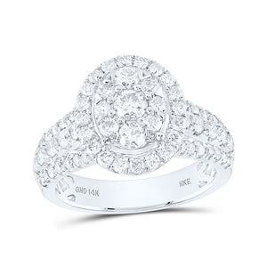 14kt White Gold Womens Round Diamond Oval Ring 1-1/2 Cttw