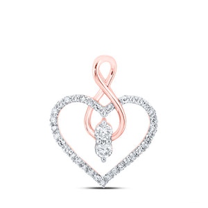 10kt Rose Gold Womens Round Diamond Heart Pendant 1/3 Cttw