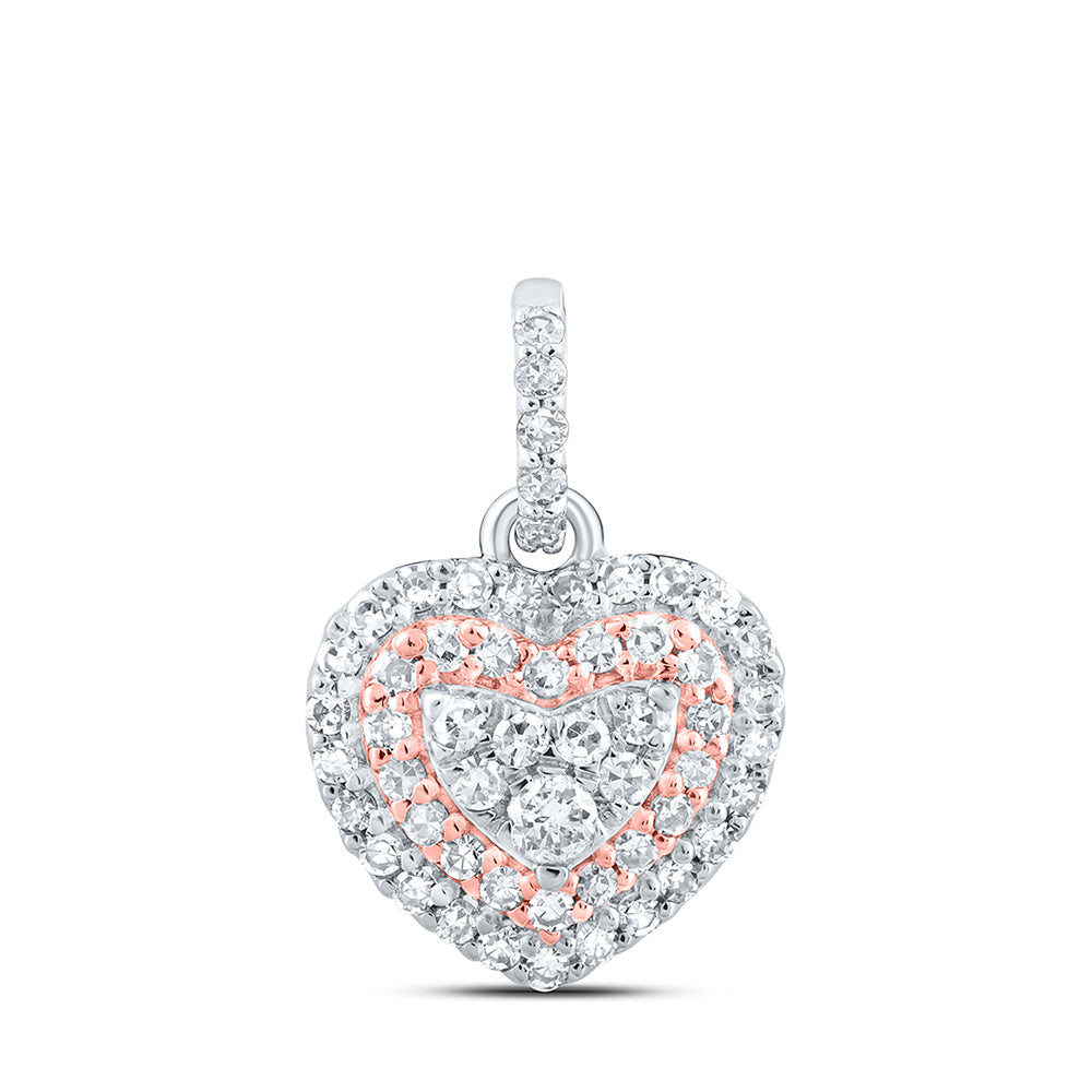 10kt Two-tone Gold Womens Round Diamond Heart Pendant 1/4 Cttw
