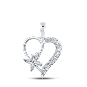 10kt White Gold Womens Round Diamond Butterfly Heart Pendant 1/4 Cttw