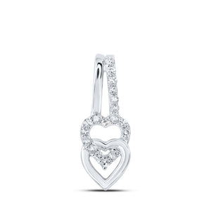 10kt White Gold Womens Round Diamond Heart Pendant 1/10 Cttw