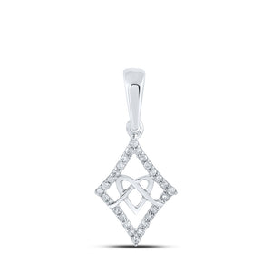 10kt White Gold Womens Round Diamond Heart Pendant 1/12 Cttw