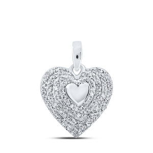 10kt White Gold Womens Round Diamond Heart Pendant 1/4 Cttw