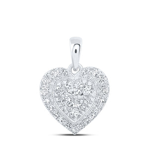 10kt White Gold Womens Round Diamond Heart Pendant 1/4 Cttw