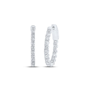 10kt White Gold Womens Round Diamond Inside Outside Hoop Earrings 1 Cttw