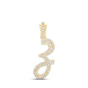 10kt Yellow Gold Womens Round Diamond Z Cursive Initial Letter Pendant 1/3 Cttw