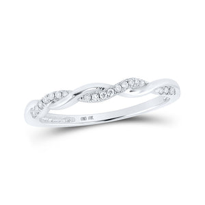 14kt White Gold Womens Round Diamond Twist Stackable Band Ring 1/12 Cttw