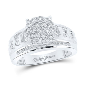 10kt White Gold Round Diamond Cluster Bridal Wedding Engagement Ring 1 Cttw
