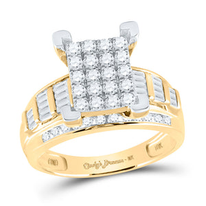10kt Yellow Gold Round Diamond Cluster Bridal Wedding Engagement Ring 7/8 Cttw