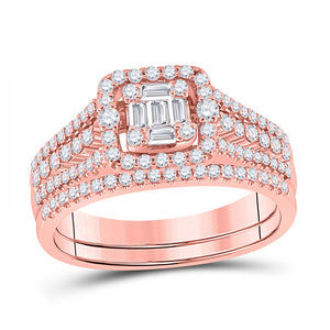 14kt Rose Gold Baguette Diamond Square Bridal Wedding Engagement Ring 7/8 Cttw