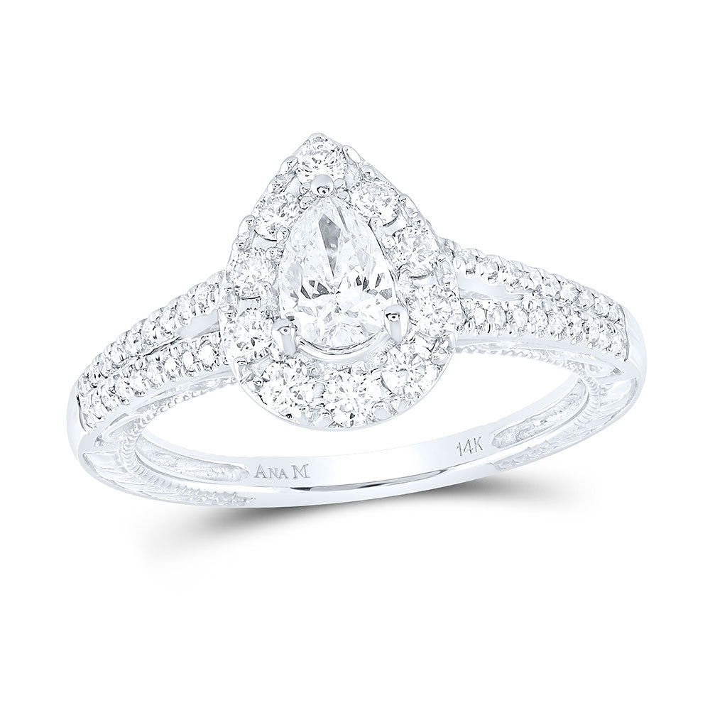 14kt White Gold Pear Diamond Solitaire Bridal Wedding Engagement Ring 1 Cttw