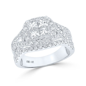 14kt White Gold Princess Diamond Cluster Bridal Wedding Engagement Ring 2 Cttw