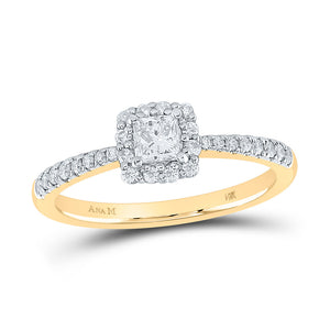 14kt Yellow Gold Princess Diamond Square Halo Bridal Wedding Engagement Ring 1/2 Cttw