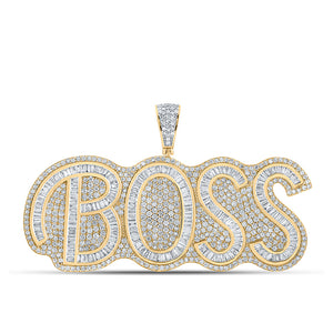 10kt Two-tone Gold Mens Baguette Diamond BOSS Charm Pendant 6-3/4 Cttw