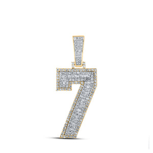 10kt Two-tone Gold Mens Baguette Diamond Number 7 Charm Pendant 1-1/3 Cttw