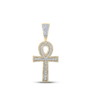 10kt Two-tone Gold Mens Round Diamond Ankh Cross Charm Pendant 7/8 Cttw
