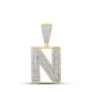 10kt Two-tone Gold Mens Round Diamond Initial N Letter Charm Pendant 7/8 Cttw