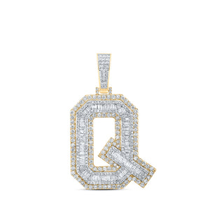 10kt Yellow Gold Mens Baguette Diamond Q Initial Letter Charm Pendant 3-1/2 Cttw