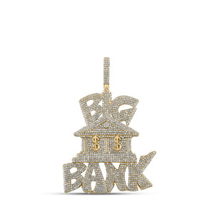 10kt Yellow Gold Mens Round Diamond Big Bank Money Charm Pendant 7-3/4 Cttw