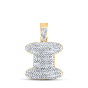 10kt Yellow Gold Mens Round Diamond Bubble I Letter Charm Pendant 3/4 Cttw