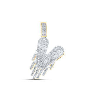 10kt Yellow Gold Mens Round Diamond Drip V Letter Charm Pendant 1/2 Cttw