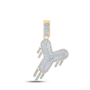 10kt Yellow Gold Mens Round Diamond Drip Y Letter Charm Pendant 1/2 Cttw