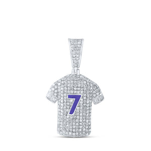 Sterling Silver Mens Baguette Diamond Number 7 Jersey Charm Pendant 1-1/4 Cttw