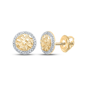 10kt Yellow Gold Mens Round Diamond Nugget Circle Earrings 1/8 Cttw