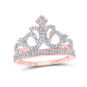 10kt Rose Gold Womens Round Diamond Fleur Crown Tiara Fashion Ring 1/5 Cttw