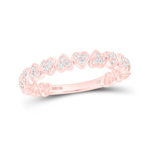 10kt Rose Gold Womens Round Diamond Heart Stackable Band Ring 1/8 Cttw