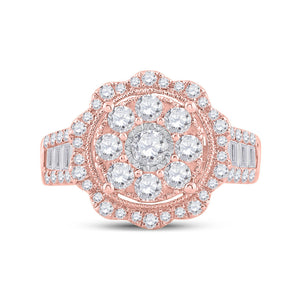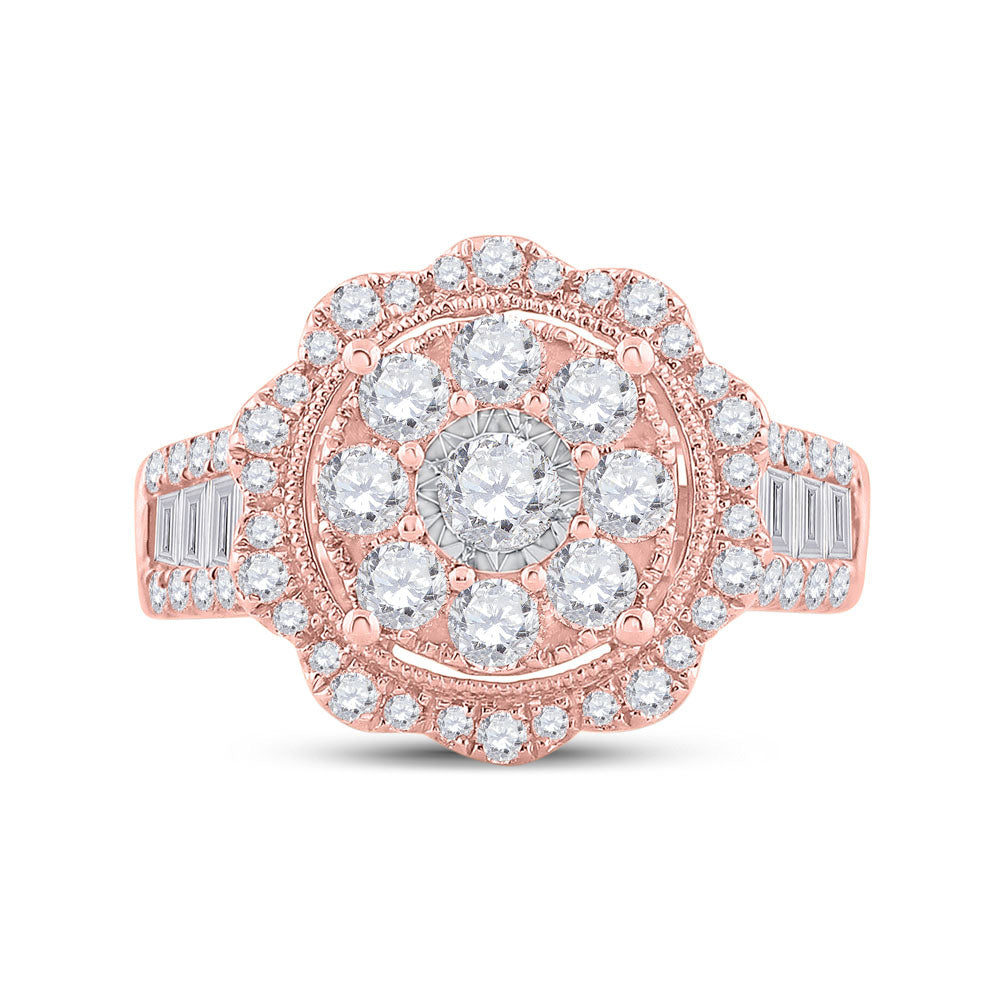 14kt Rose Gold Womens Round Diamond Floral Cluster Bridal Wedding Engagement Ring 1-5/8 Cttw