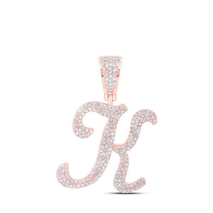 10kt Rose Gold Mens Round Diamond K Initial Letter Charm Pendant 1 Cttw
