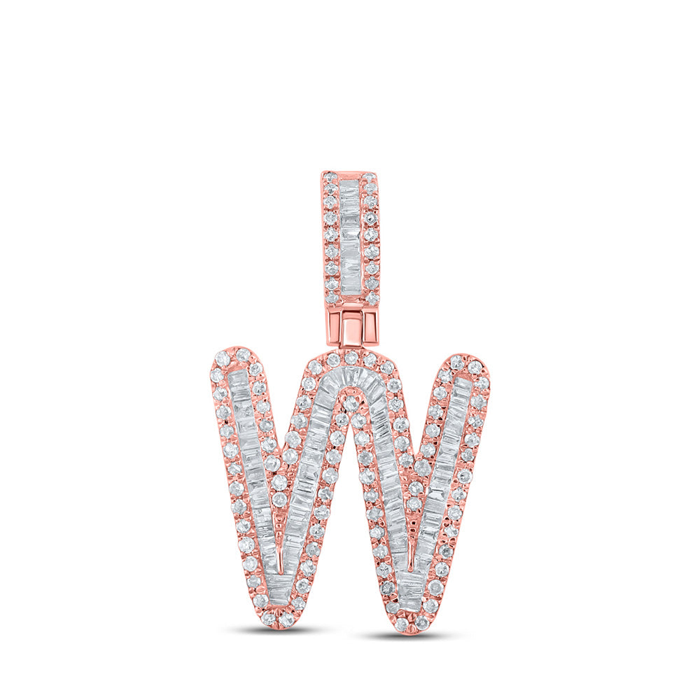 10kt Rose Gold Mens Baguette Diamond W Initial Letter Pendant 5/8 Cttw