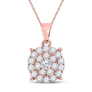 10kt Rose Gold Womens Round Diamond Cluster Pendant 1 Cttw