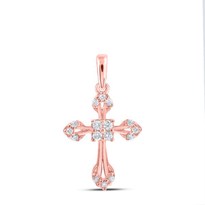 10kt Rose Gold Womens Round Diamond Cross Pendant 1/6 Cttw