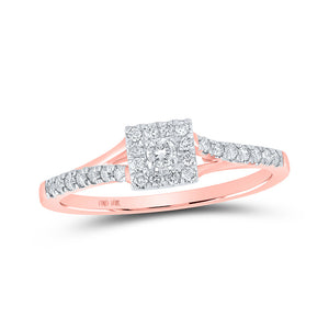 10kt Rose Gold Womens Round Diamond Halo Promise Ring 1/4 Cttw