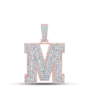 10kt Two-tone Gold Mens Baguette Diamond M Initial Letter Charm Pendant 2-7/8 Cttw