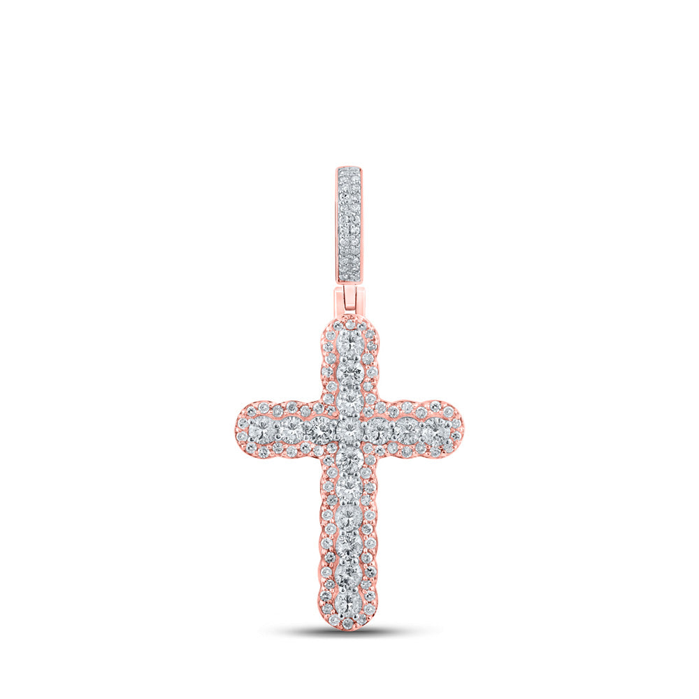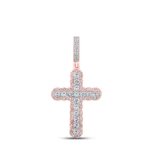 10kt Two-tone Gold Mens Round Diamond Charm Pendant 1-1/4 Cttw