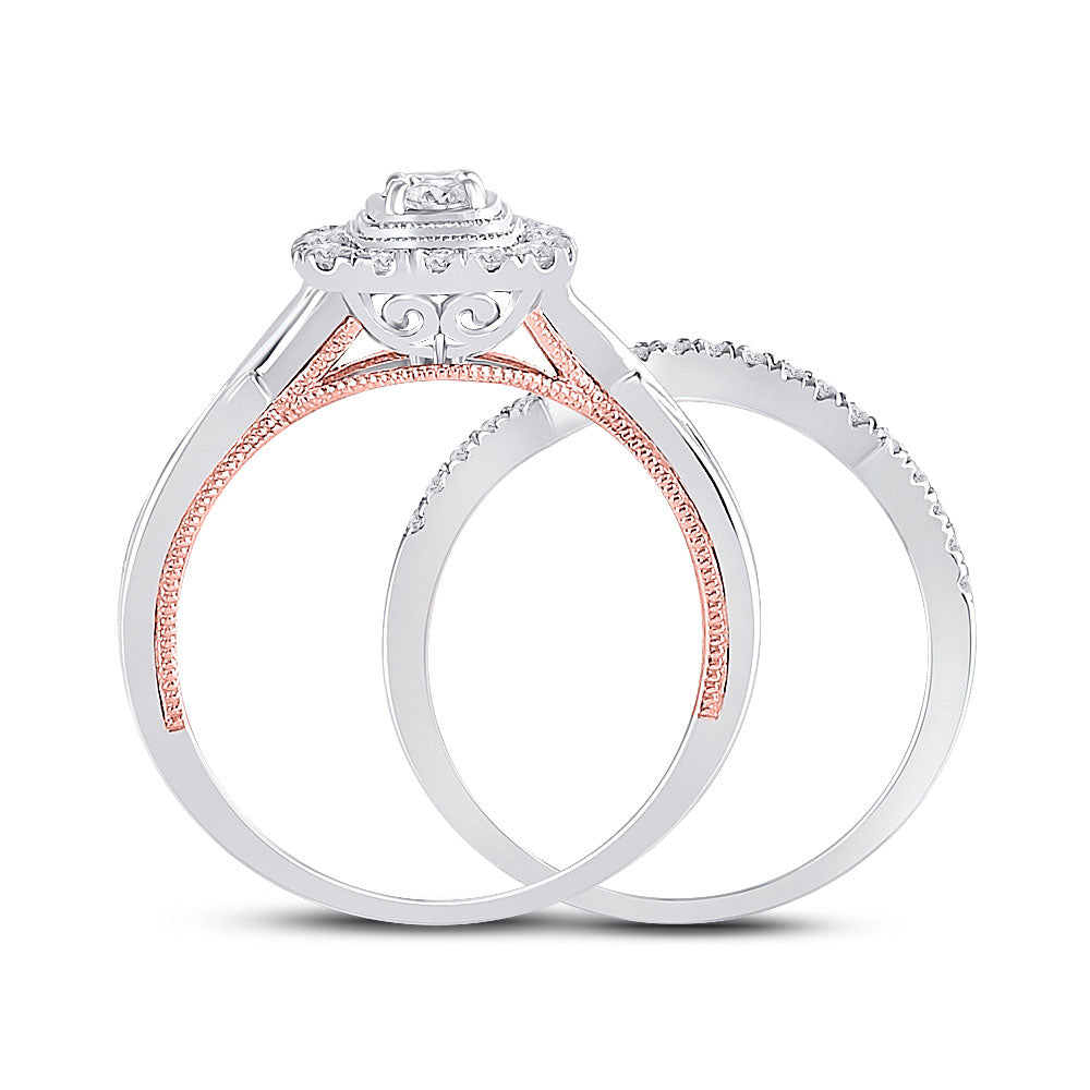 10kt Two-tone Gold Round Diamond Bridal Wedding Ring Band Set 1/2 Cttw