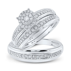 10kt White Gold His Hers Round Diamond Halo Matching Wedding Set 1/2 Cttw