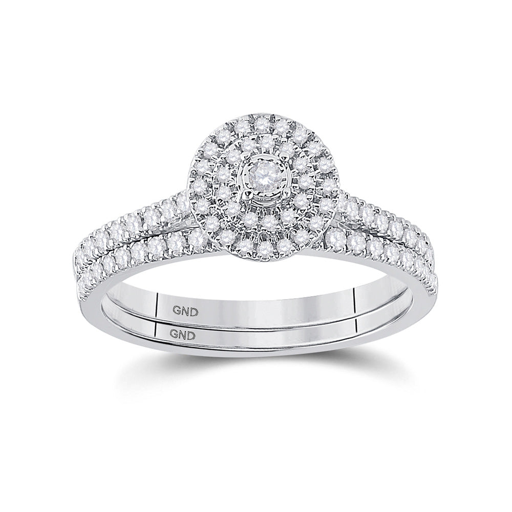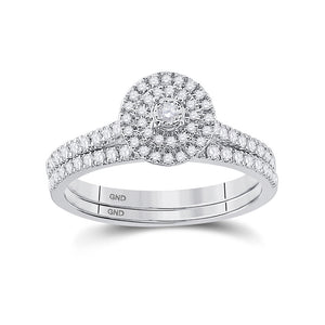 10kt White Gold Round Diamond Bridal Wedding Ring Band Set 1/3 Cttw